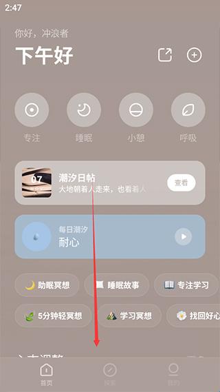 潮汐是一款冥想助眠生活软件,软件提供了自然优质的海量音频,您可以在其中自由挑选,辅助您的睡眠。这里有着番茄钟专注功能,您可以通过该功能提升专注力。软件还有睡眠监测功能,能够实时记录您的睡眠数据,让您随时掌握自己的睡眠质量情况。