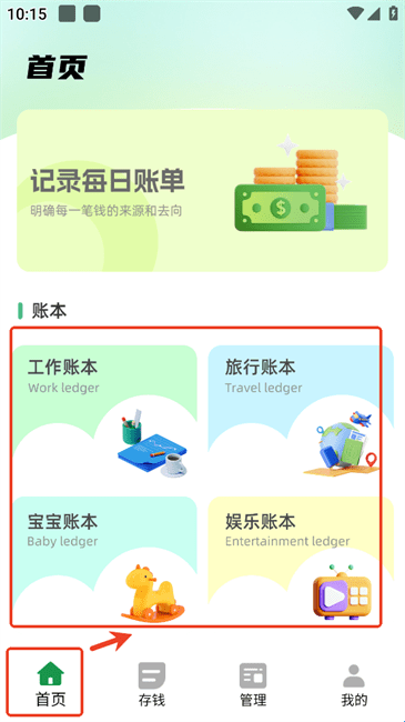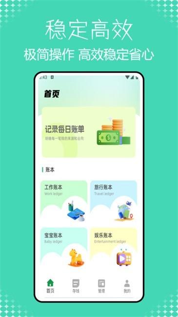 1、多账本切换:左右滑动秒切旅行、装修等独立账本。