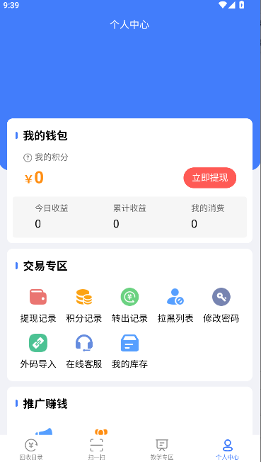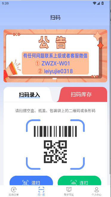 1、多品类扫码回收:支持烟盒、瓶盖、包装袋等多种带二维码废弃物的回收交易。