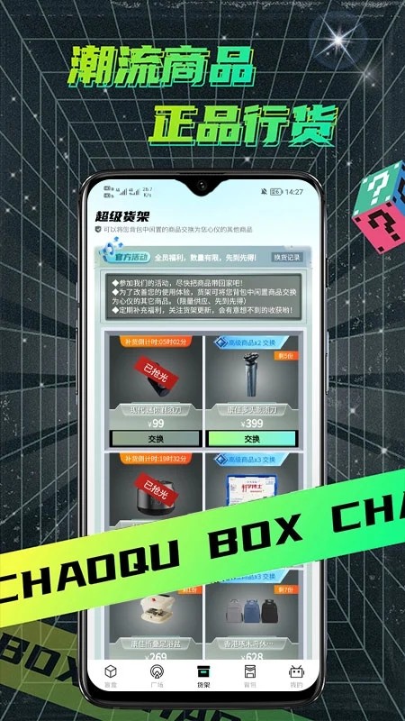 盲盒电商,是一种将若干商品放入盲盒,通过开盒的方式,随机购买等值,或者超值商品的新型趣味电商模式,依托手机 App《潮趣魔盒》,给用户带来不一样的购物体验。通过游戏的方式,带来更多快乐的同时也让用户能更少的钱博取更大奖品。潮趣生活,从潮趣魔盒开始,欢迎加入潮趣的大家庭。