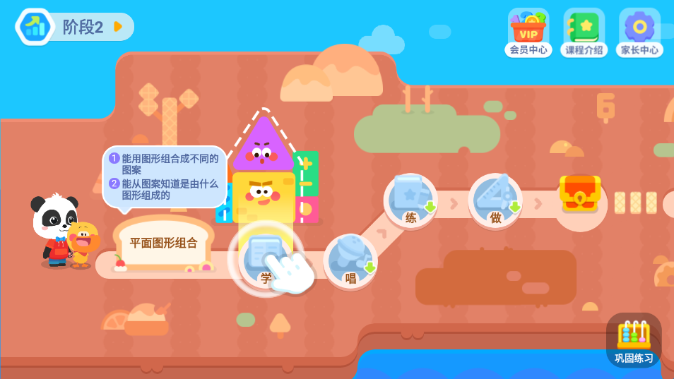 3、巩固测验:每个启蒙阶段后设置测验环节,引导儿童和bossPK脑力,巩固记忆。