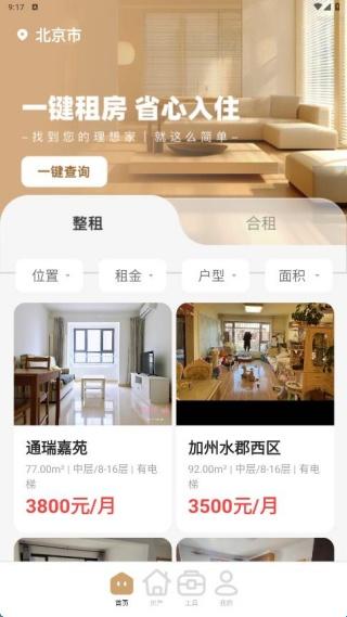 1、首页提供了整租和合租房源,可以更及时进行查询。