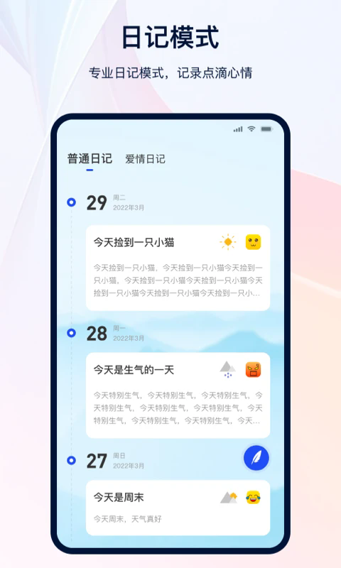 2、离线状态同样可以使用,无网络限制,随时随地书写日记。