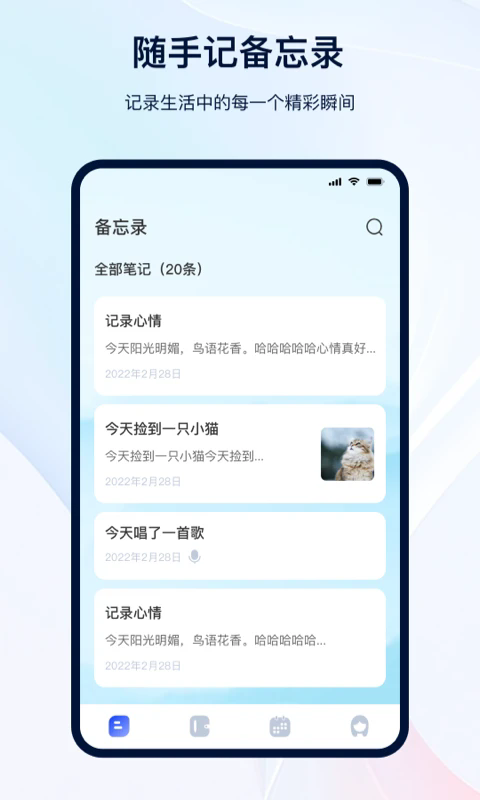 4、云备份:自动备份,便签永不丢失,记录随时可查。