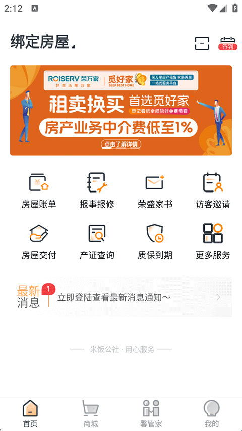 1、打开米饭公社APP,点击我的-我的服务-我的房屋。