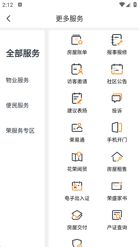 5、点击更多服务,查看物业、便民、荣服务等全部服务内容。