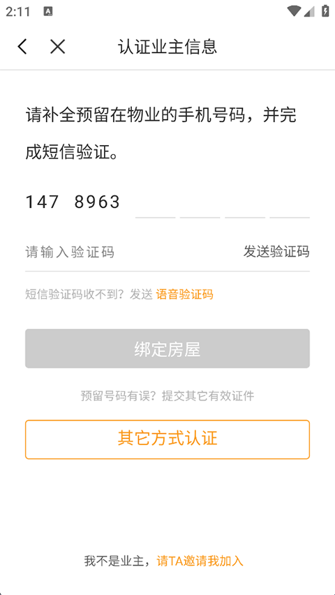 3、输入预留在物业的手机号并填入验证码以完成绑定。