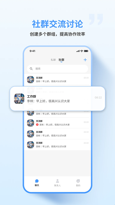 3、能创建容纳众多成员的群组,群聊人数上限极高,可实现万人以上群聊互动,具备消息置顶、任务标注、群文件归类管理等实用工具,便于团队协作。