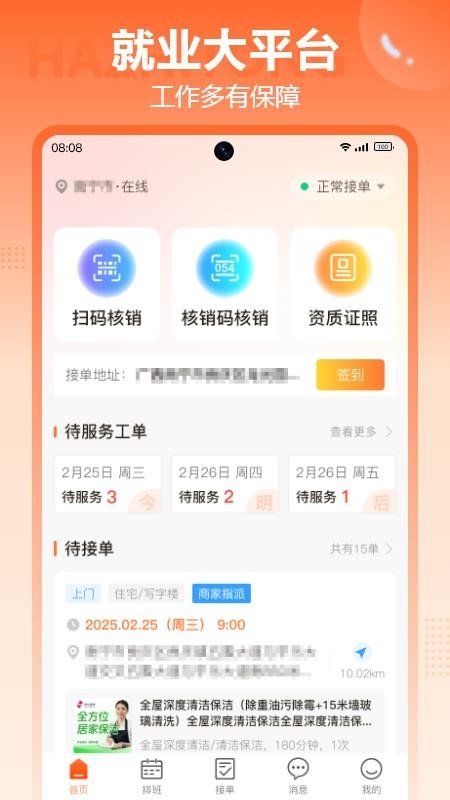 哈职通app主要为职业人才提供线上的服务接单,超多的工单资源都可让你随时随地的接单,这里涵盖了多种服务订单资源,让你轻松接单赚钱,提高自己的收益来源;而且用户也可以对相关的订单实现电子签约,让你线上签约合同,确保服务的安全。