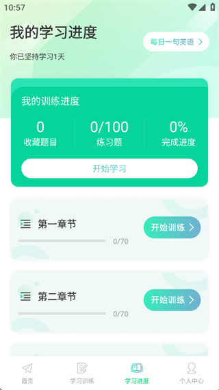 3、学习进度随时查看,还能根据需要进行章节学习练习。