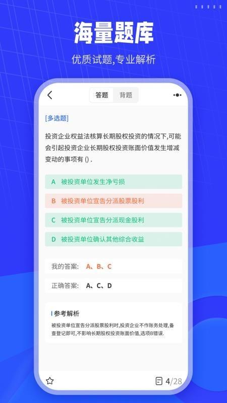1、丰富的会计题库内容随时学习,根据自己的需求选择合适的题库在线做。