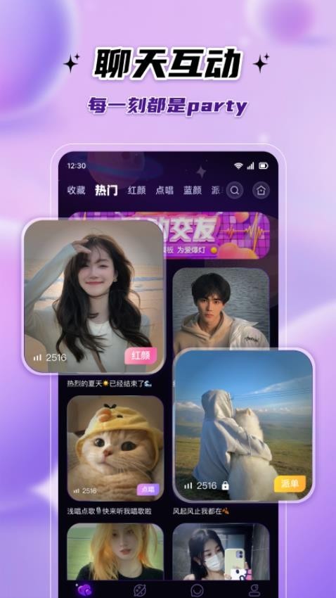 2、众多派对:提供了众多的交友聊天的派对中,能够通过派对来进行互动聊天;