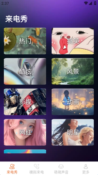 1、来电选择:为你带来不同类型的来电秀选择,满足不同用户的需求。
