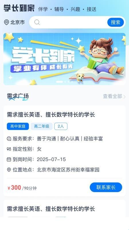 3、关键词搜索:通过学科进行搜索,为孩子寻找合适的补课学长,这样才可以让孩子获得补课服务。