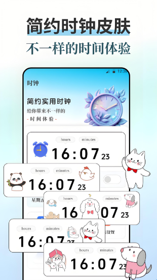1、不同主题:拥有不同主题的时钟皮肤,用户也可以自由使用和切换不同的皮肤使用。