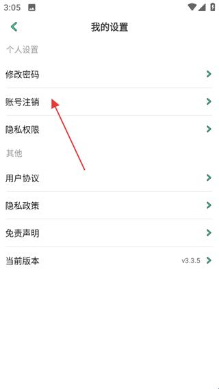 3、在我的设置页面,点击账号注销,进入账号注销提示页面。