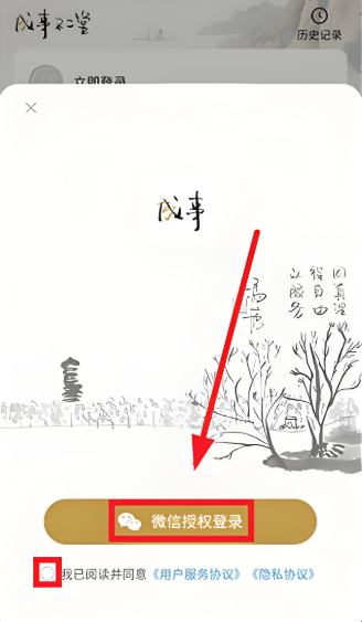 3、勾选我已阅读并同意《用户服务协议》《隐私协议》,点击微信授权登录即可。