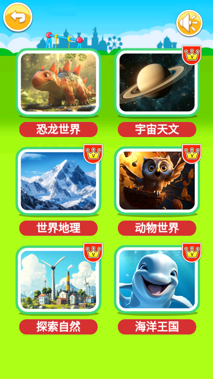 4、趣味认知方式,孩子可以在游戏之中认识动物、植物和天文、历史等内容。