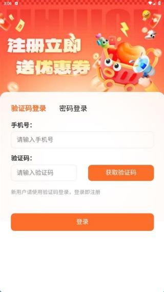 1、安装后在个人页面点击账号进行登录,支持验证码和密码登录方式。