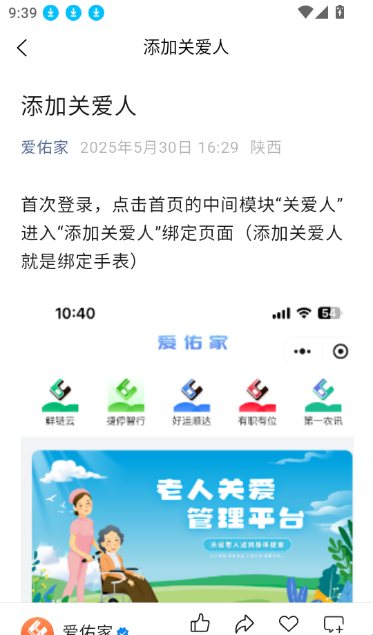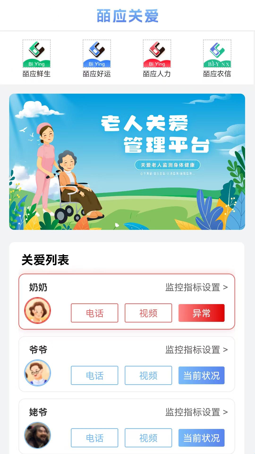 5、关爱列表:这里还展示了清晰的关爱列表,用户可以随时对家人进行关爱,查看相关的列表。