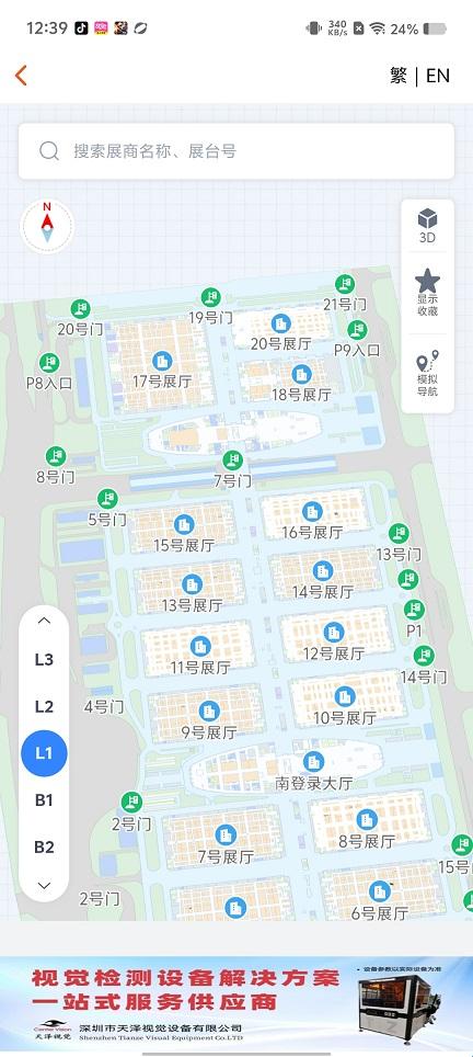 2、地图互动:实时显示展位分布与自身位置,快速规划路径,避免迷路,提升现场观展效率。