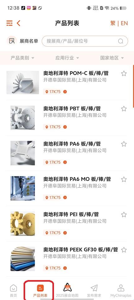 5、产品列表:展示了展会中清晰的产品列表,方便用户实时查找需要的产品,更好的掌握产品的展位。