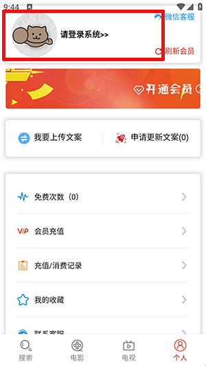 1、点击我的页面,点击上方的登录选项。