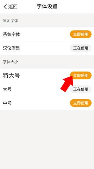 4、来到“字体设置”界面后,选择特大号字体即可。