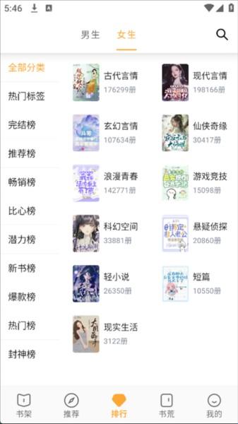 5、在排行榜页面,可以查看最新的小说排行榜单。