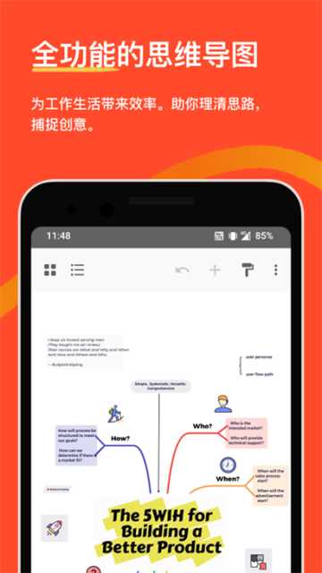 Mind思维导图能够将复杂的想法、知识和信息简化为清晰的思维导图。