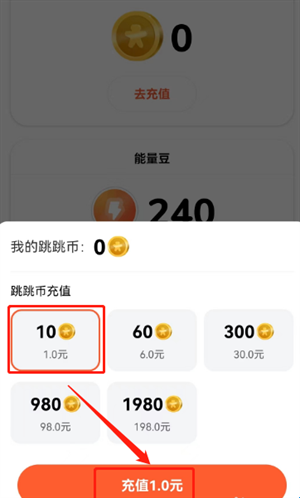 3、即可在页面中选择跳跳币充值数量进行充值即可获得跳跳币。