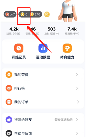 1、在天天跳绳我的页面点击跳跳币选项。