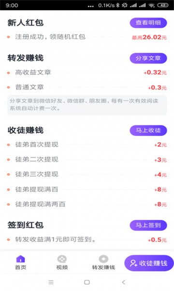 3、邀请收徒可获得最高18元的奖励,同时还可以获得两级提成共120%(限时三天),三天后80%