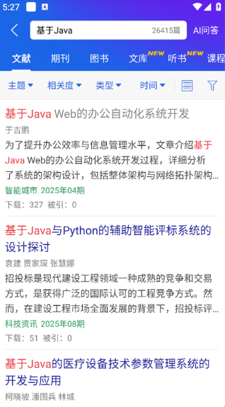 2、在搜索栏搜索您感兴趣的论文标题。