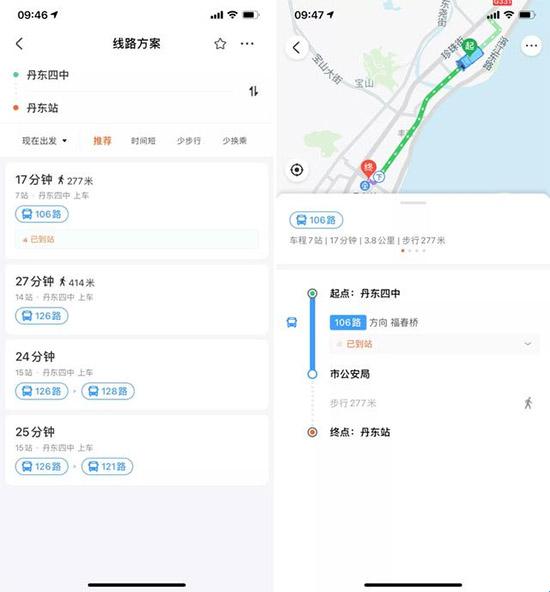 3、动态换乘:去哪儿?结合公交动态信息、首末班发车信息及路径距离等多维度的换乘方案;
