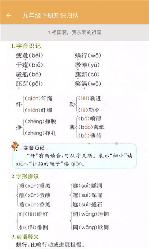 初中语文知识归纳app是由石林昆林科技有限公司打造的一款非常稳定的手机语文知识总结软件哟,功能非常的强大为广大的而用户们提供了初中语文全部课文知识解析,非常的详细方便学生们查看使用,帮助大家快速的提高成绩等,需要的用户们就赶紧来下载吧。
