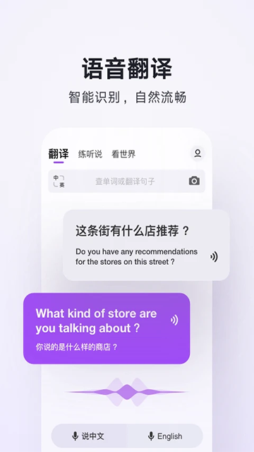 4、语音翻译:无需打字,对着说话,精准识别并翻译,快拿去与歪果友人谈笑风生吧。