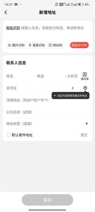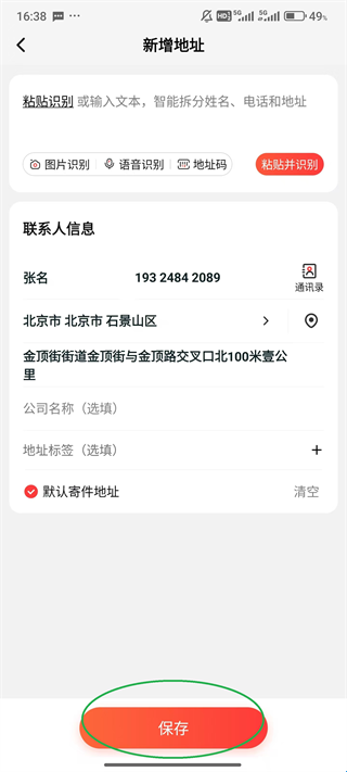 4、输入联系人的姓名,电话以及详细地址,也可以通过粘贴的方式一键生成。