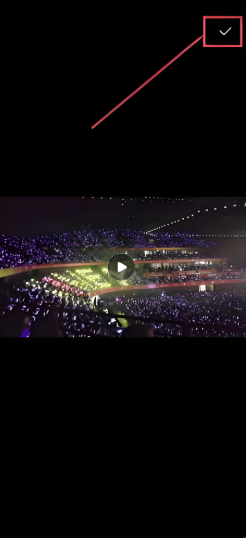 2、点击后会跳转至相册,在相册中选择你要上传的视频,选中后点击右上角勾。