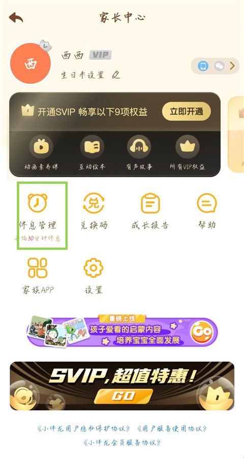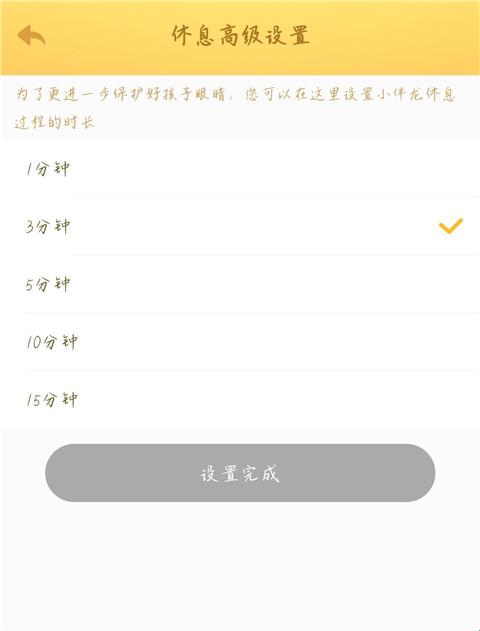 4、进入高级设置,可以设置小伴龙休息过程的时长,在此期间,小伴龙将保持锁屏状态。