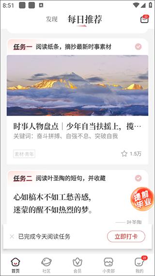 5、每日积累,定时充电:空闲时间打开纸条,每天半小时,获取比学校更广阔的视野,比杂志更全面的资讯,逐步提高自己的阅读和写作能力。跟着纸条君一起拓宽自己知识的边界,提升自己的文学素养。