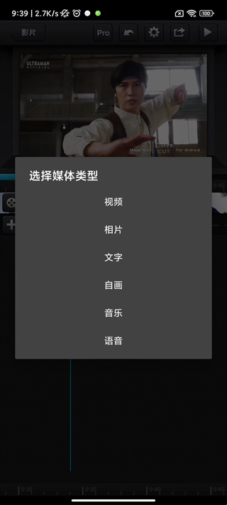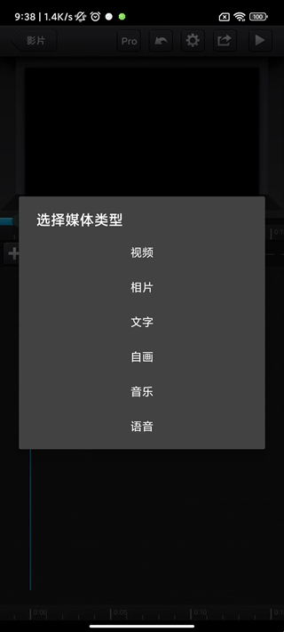 6、点击“+”号,用户即可导入素材(视频、相片、文字、音乐、语音等);