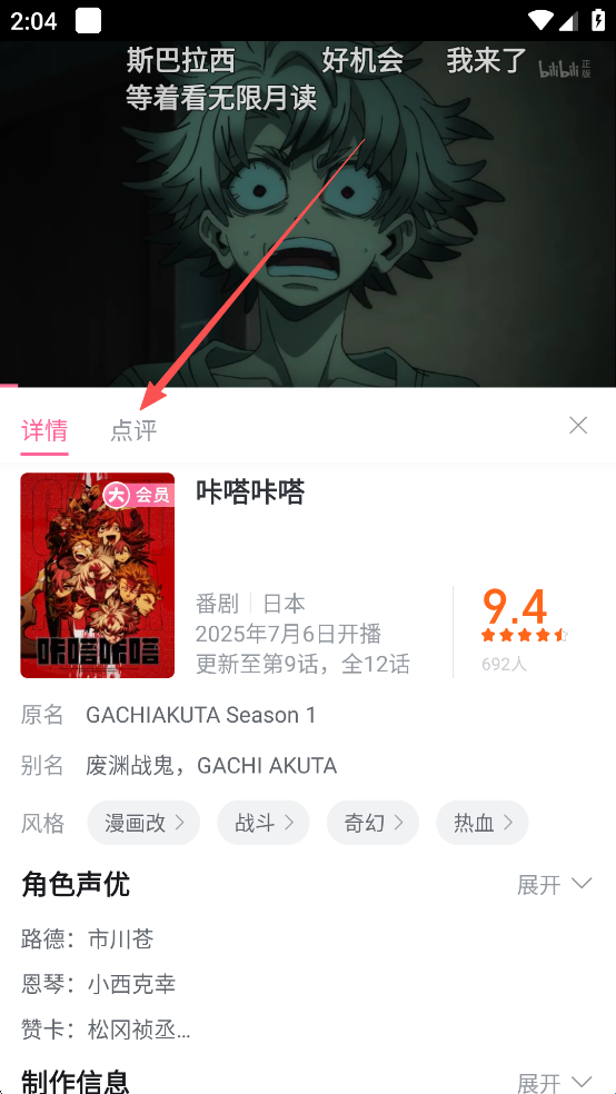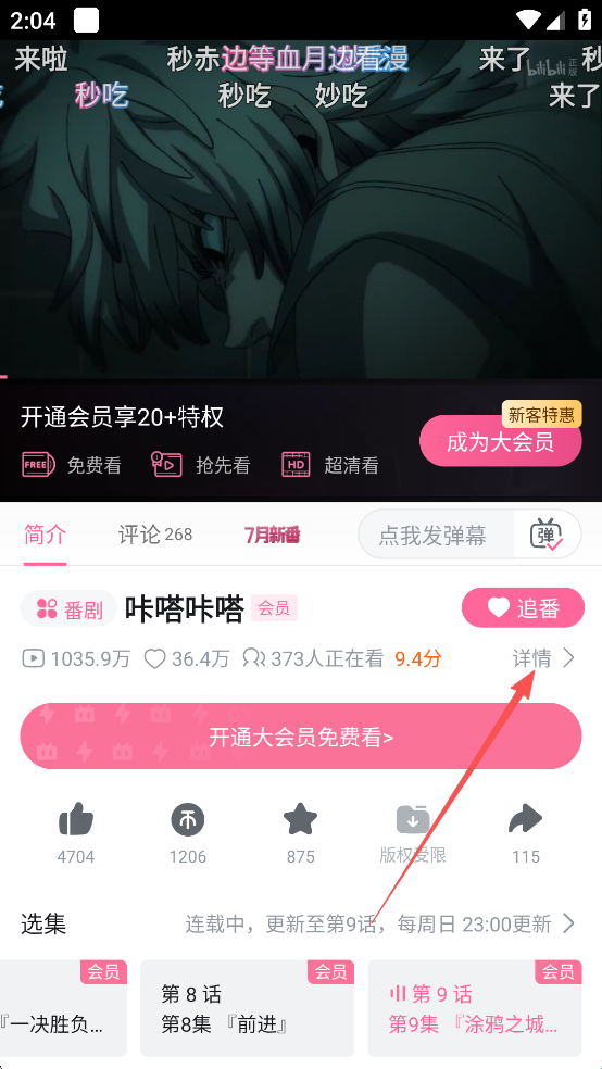 1、打开哔哩哔哩动画App,在首页中点击动画界面,并选择你要观看的动画