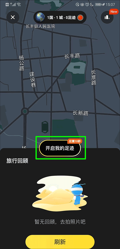 2.在旅行回顾界面找到并点击“开启我的足迹”选项;