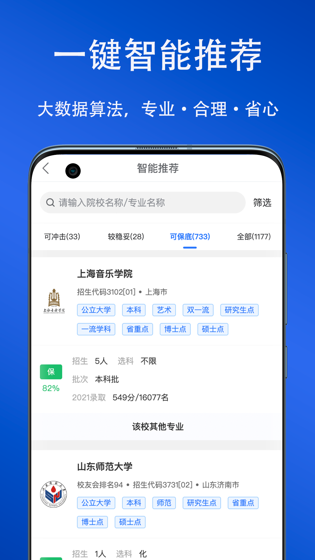2、数据全面:拥有往年连续六年的全国录取数据,为录取提供最可靠的参考。