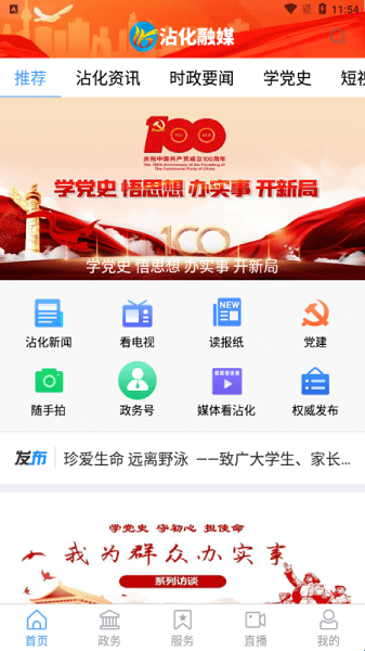 “沾化融媒”手机客户端在融合广播、电视、报纸、直播等宣传内容的基础上,积极拓展媒体服务。
