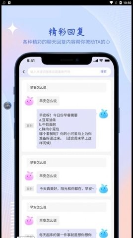 2、软件将能够让你从容聊天,还可以直接复制内容来查找专业的回复话语。