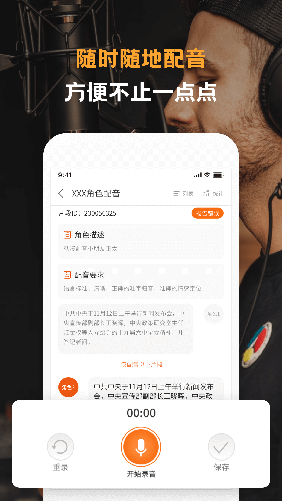 1.专门为喜欢配音的用户打造的,这里每天都会有很多的线上配音任务可以为你提供;