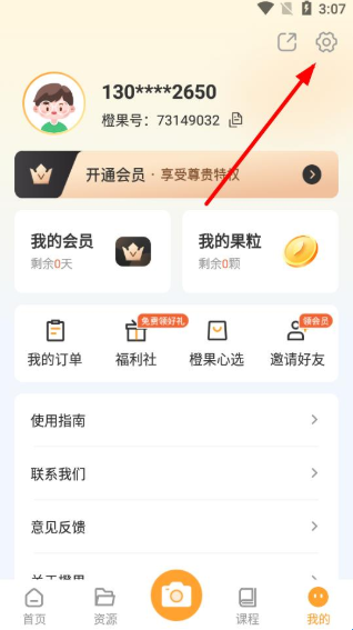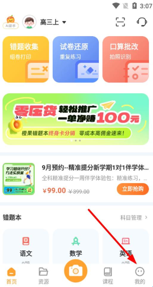 1、打开橙果错题本app,点击底部导航栏中的我的图标,进入个人界面。