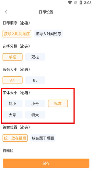 橙果错题本APP打印出的字小怎么调整?